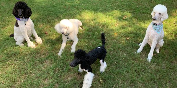 Olaf is 3 years old. He will be potty trained and have some basics before he is placed and is already neutered. He is one of our smallest poodles standing around 24" at the shoulder and weighing roughly 45-50 pounds. He is great with other dogs and cats. He tends to be fairly calm and a bit of an observer.